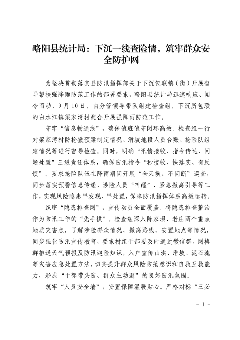 略阳县统计局:下沉一线查险情,筑牢群众安全防护网