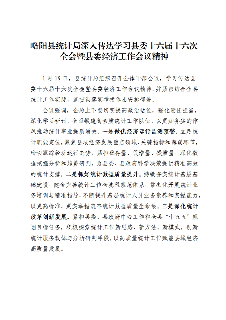 略阳县统计局深入传达学习县委十六届十六次全会暨县委经济工作会议精神