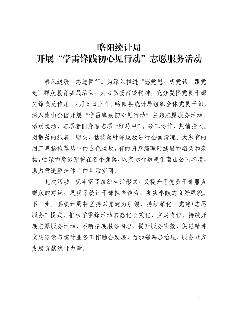 略阳统计局开展“学雷锋践初心见行动”志愿服务活动
