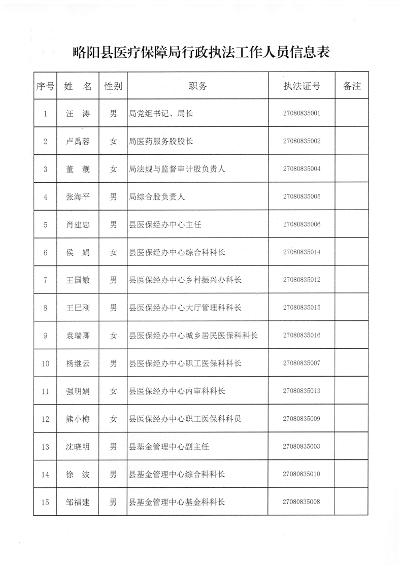 行政执法人员信息公示