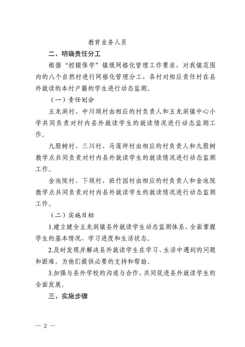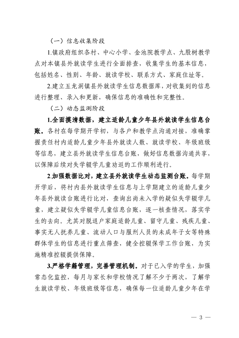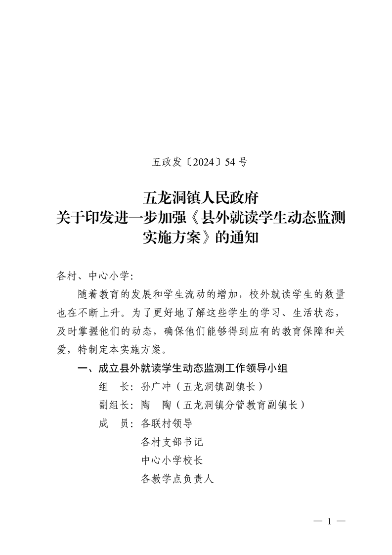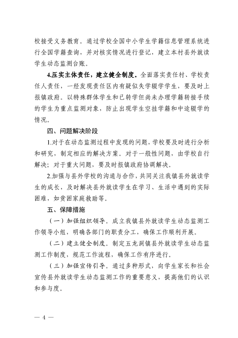 五龙洞镇人民政府关于印发进一步加强《县外就读学生动态监测实施方案》的通知