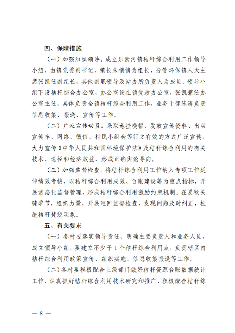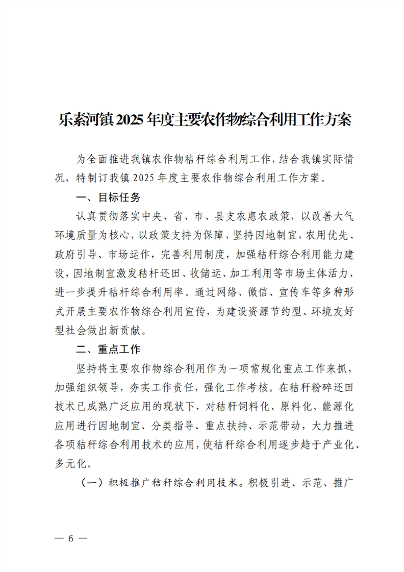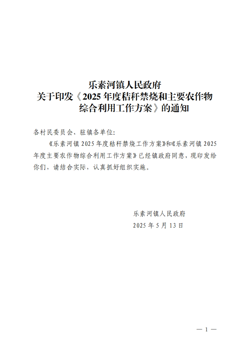 乐素河镇人民政府关于印发《2025年度秸秆禁烧和主要农作物综合利用工作方案》的通知