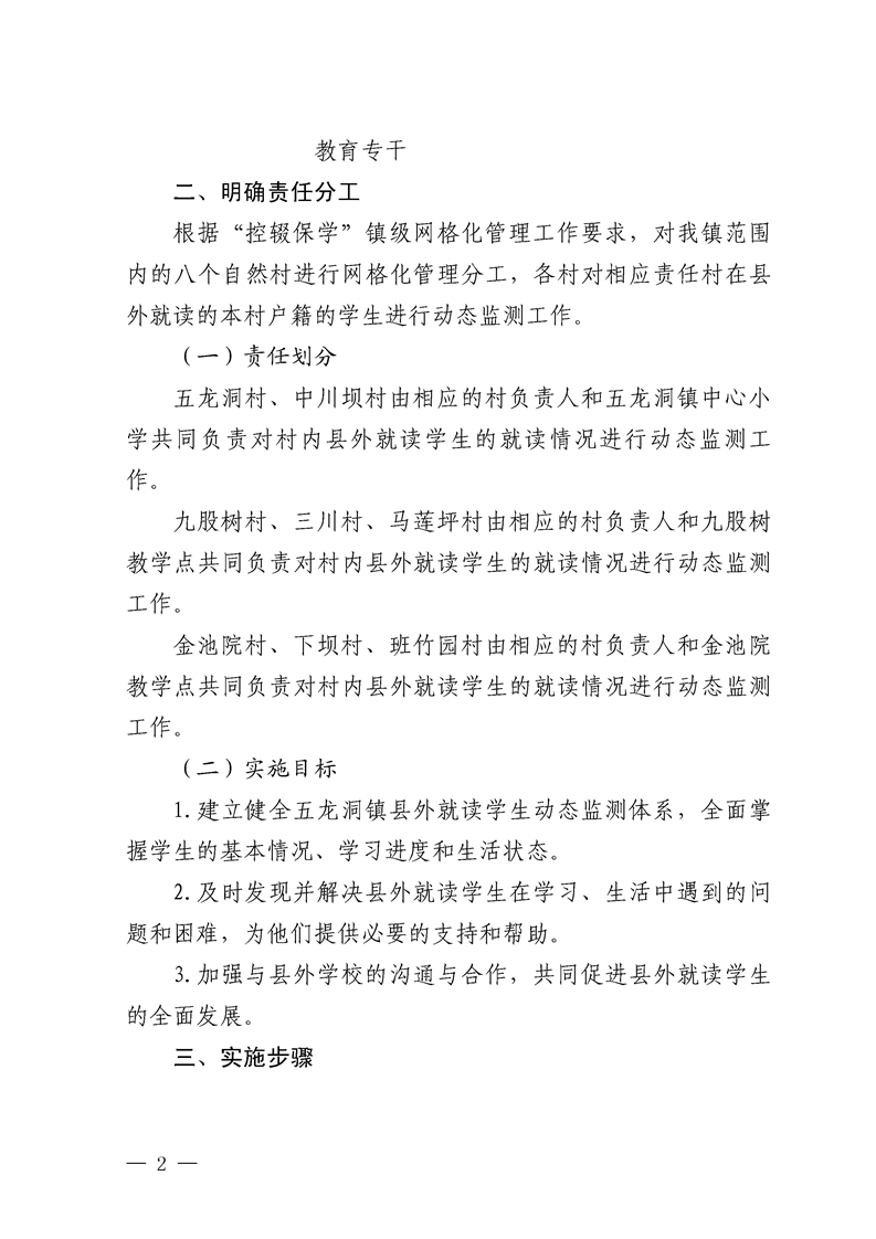 五龙洞镇人民政府关于印发进一步加强《县外就读学生动态监测实施方案》的通知