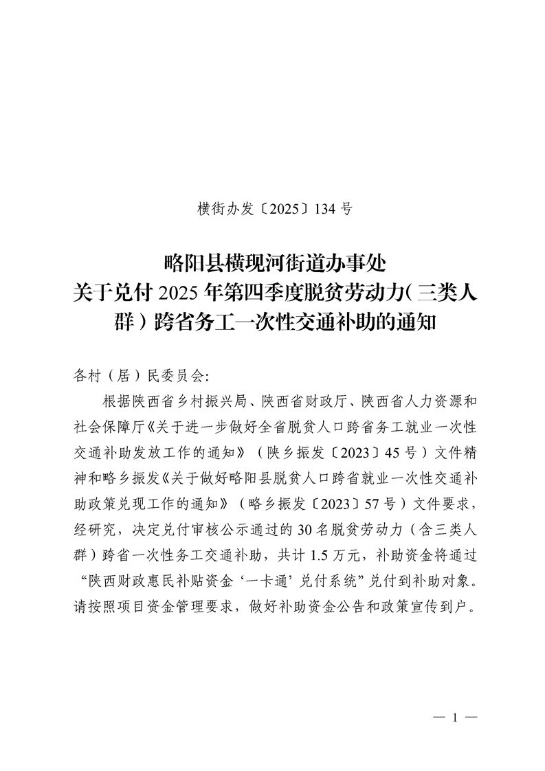 关于兑付第四季度脱贫劳动力、三类人群(含灵活就业、60岁以上人员)跨省务工一次性交通补助的通知