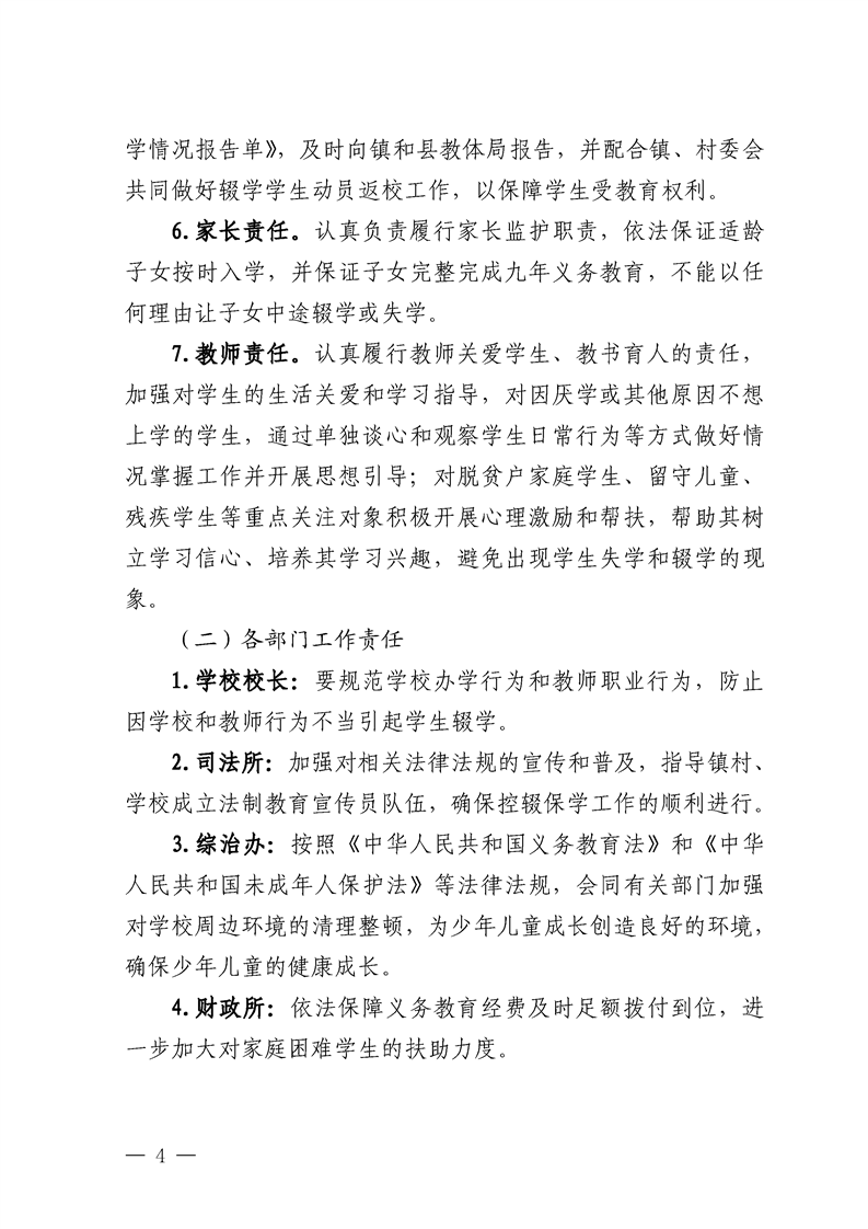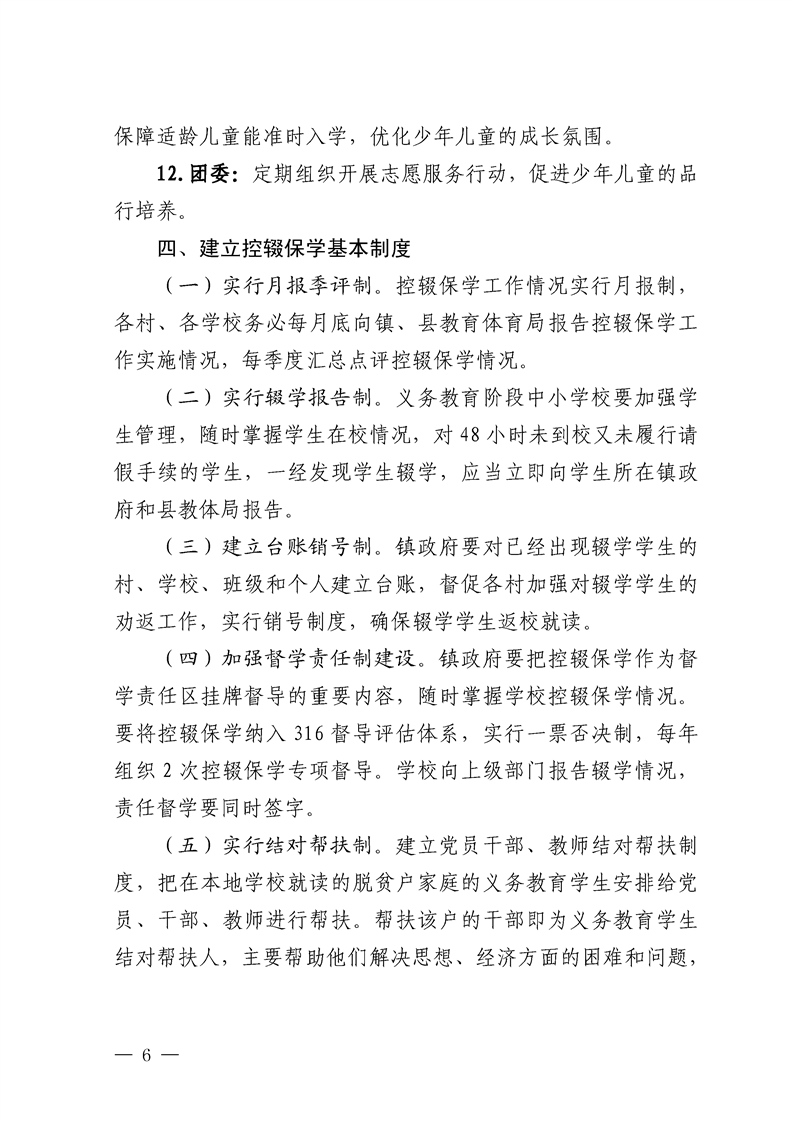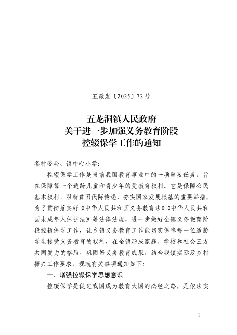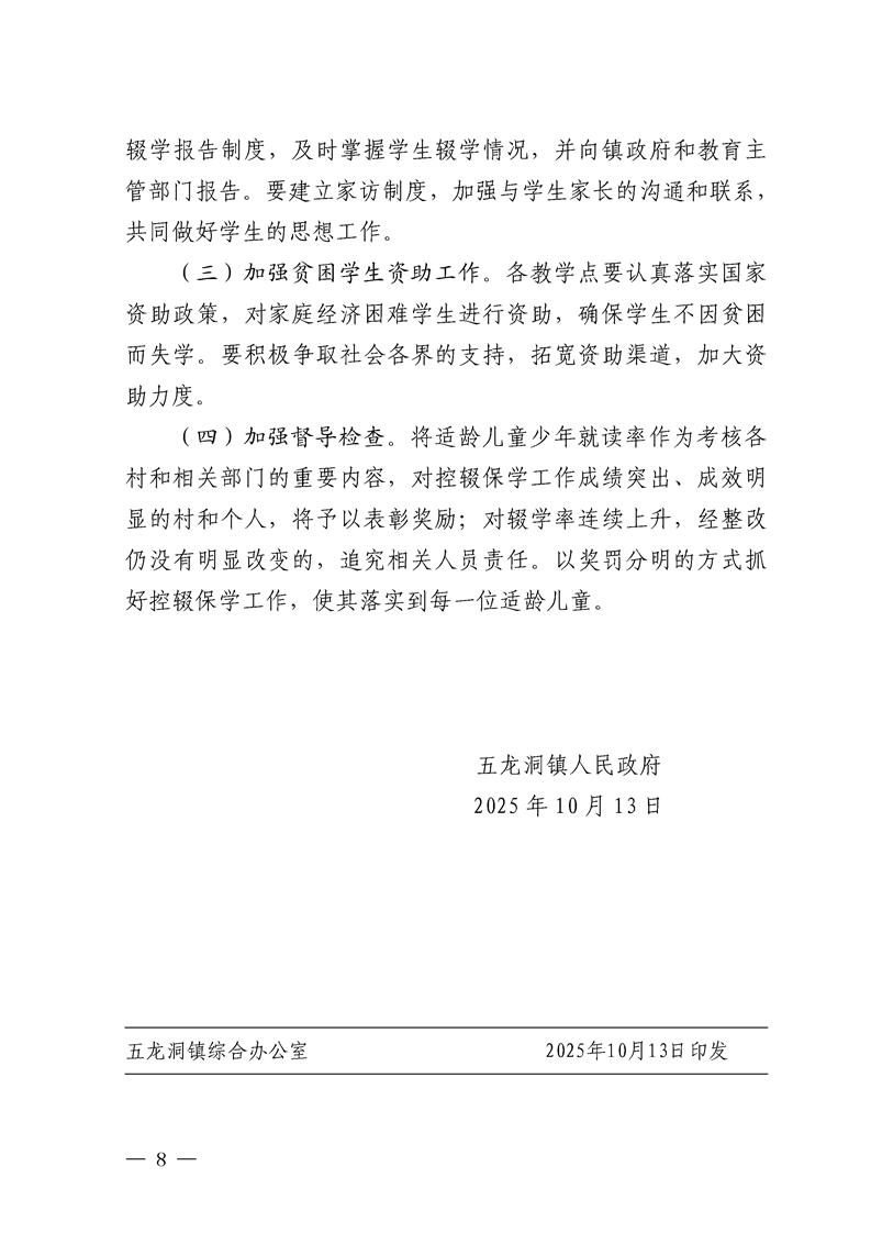五龙洞镇人民政府关于进一步加强义务教育阶段控辍保学工作的通知
