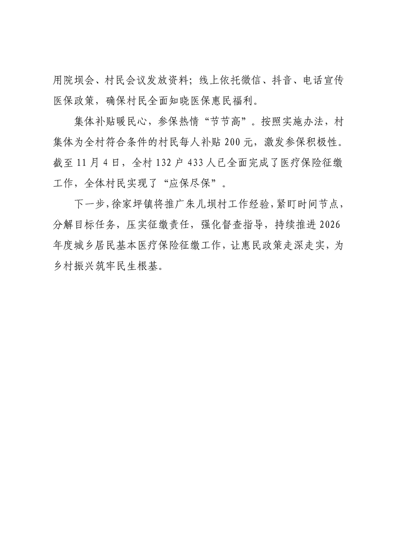 【医保惠民】徐家坪镇朱儿坝村:民生保障见实效