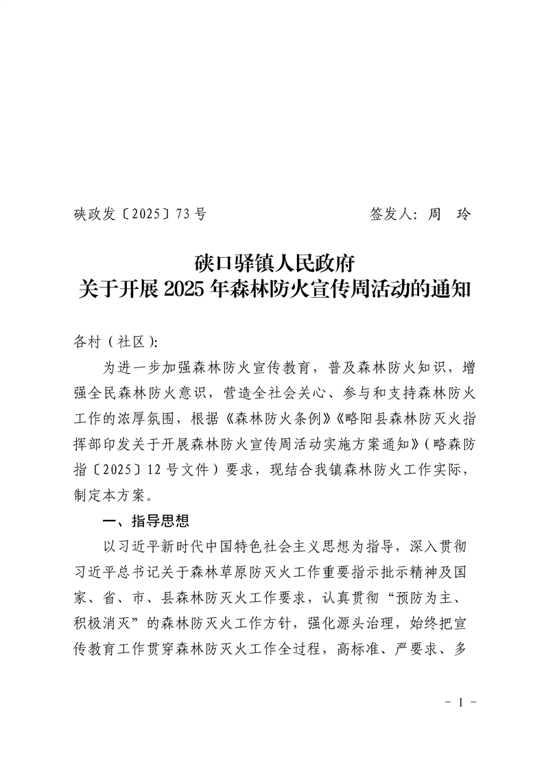 硖口驿镇人民政府关于开展2025年森林防火宣传周活动的通知
