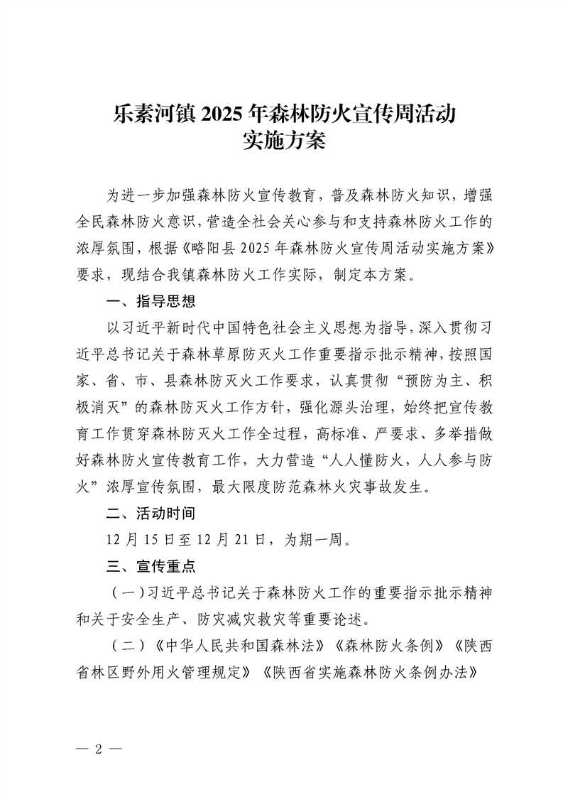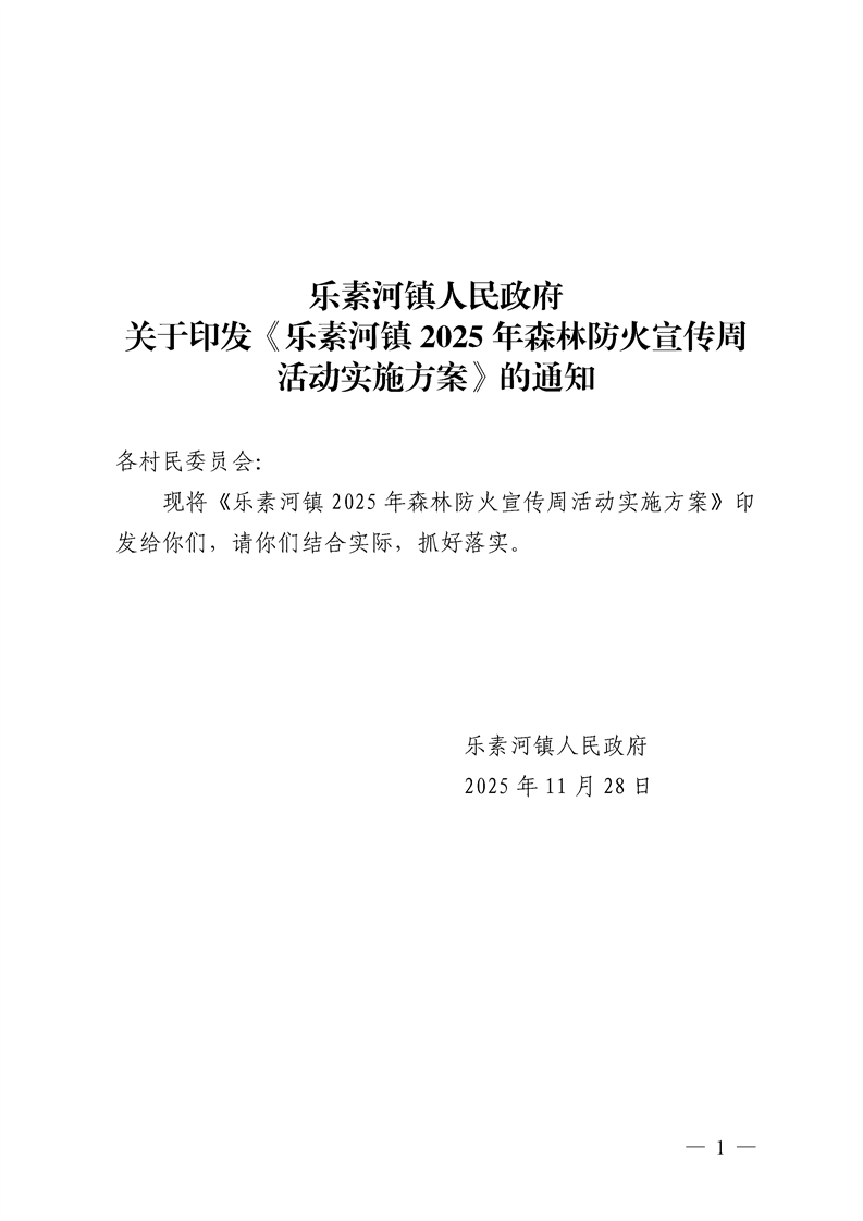 乐素河镇人民政府关于印发《乐素河镇2025年森林防火宣传周活动实施方案》的通知