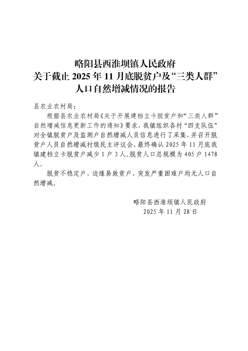 关于截止2025年11月底脱贫户及“三类人群”人口自然增减情况的报告