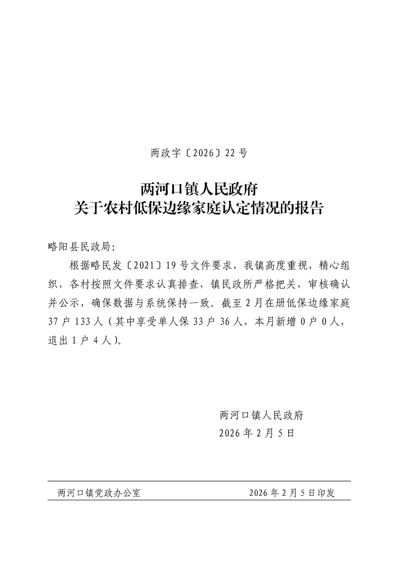 两河口镇人民政府关于农村低保边缘家庭认定情况的报告
