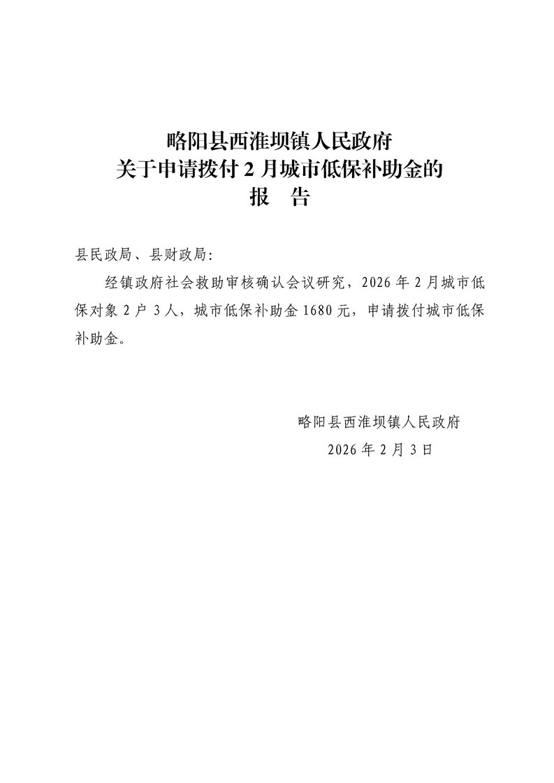 关于申请拨付2月城市低保补助金的报告
