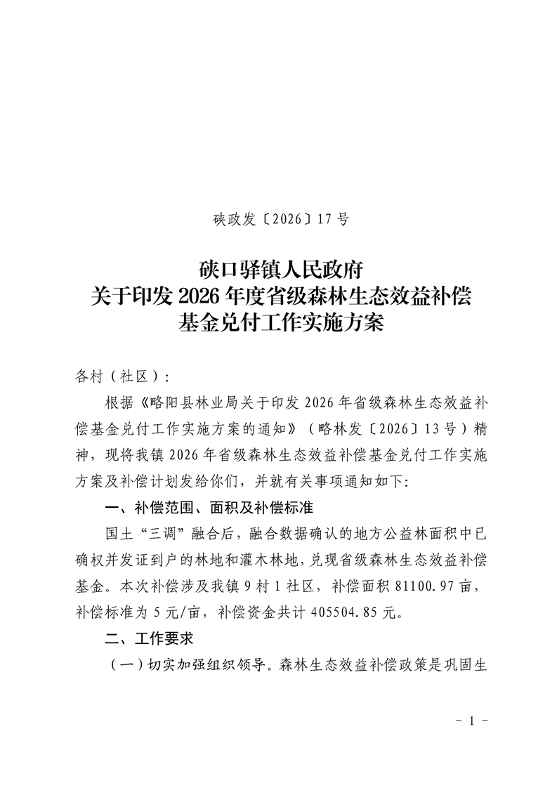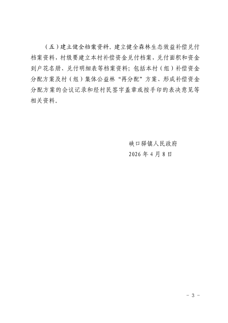 硖口驿镇人民政府关于印发2026年度省级森林生态效益补偿基金兑付工作实施方案