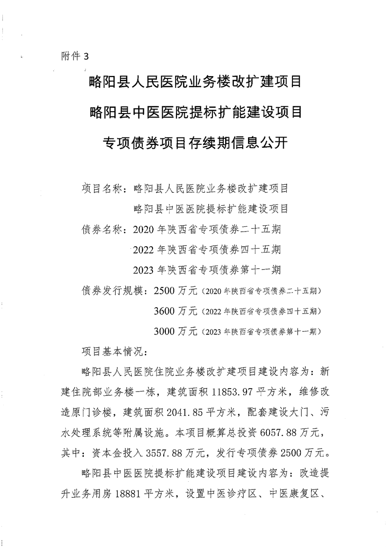 内容概述 | 略阳县人民医院业务楼改扩建项目、略阳县中医医院提标扩能建设项目专项债券项目存续期信息公开 |