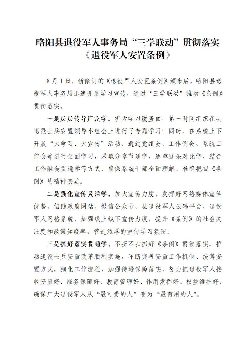 略阳县退役军人事务局“三学联动”贯彻落实《退役军人安置条例》