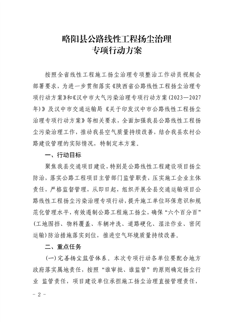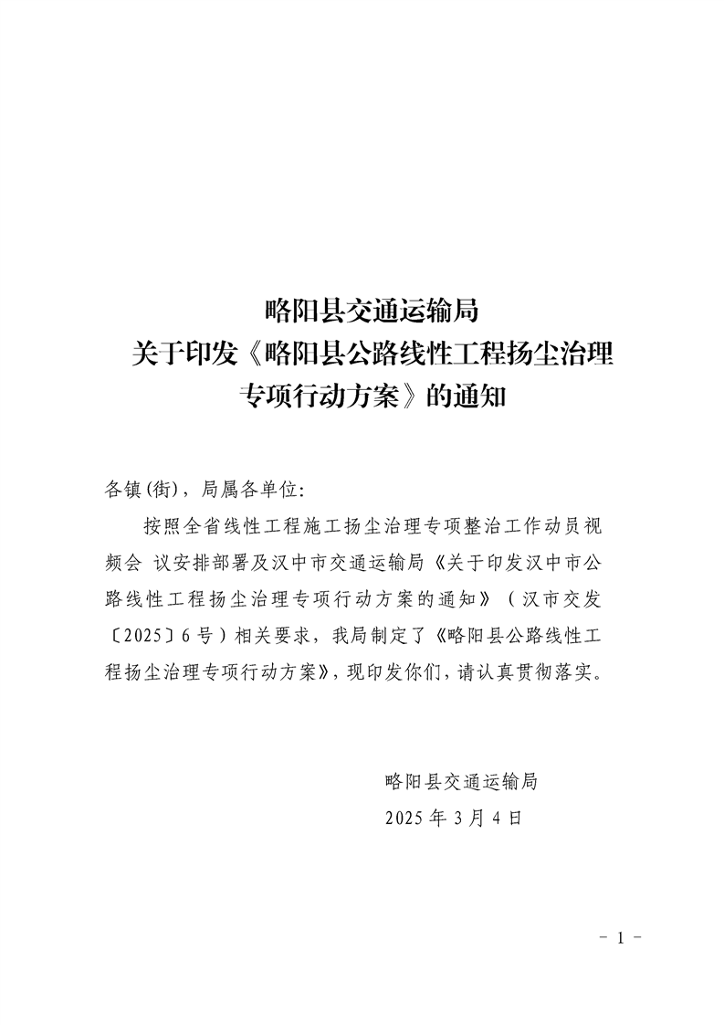| 内容概述 | 略阳县交通运输局关于印发《略阳县公路线性工程扬尘治理专项行动方案》的通知 | ||||