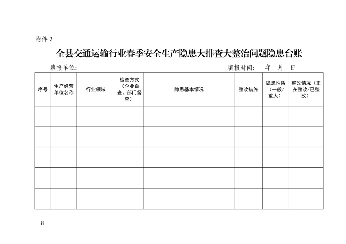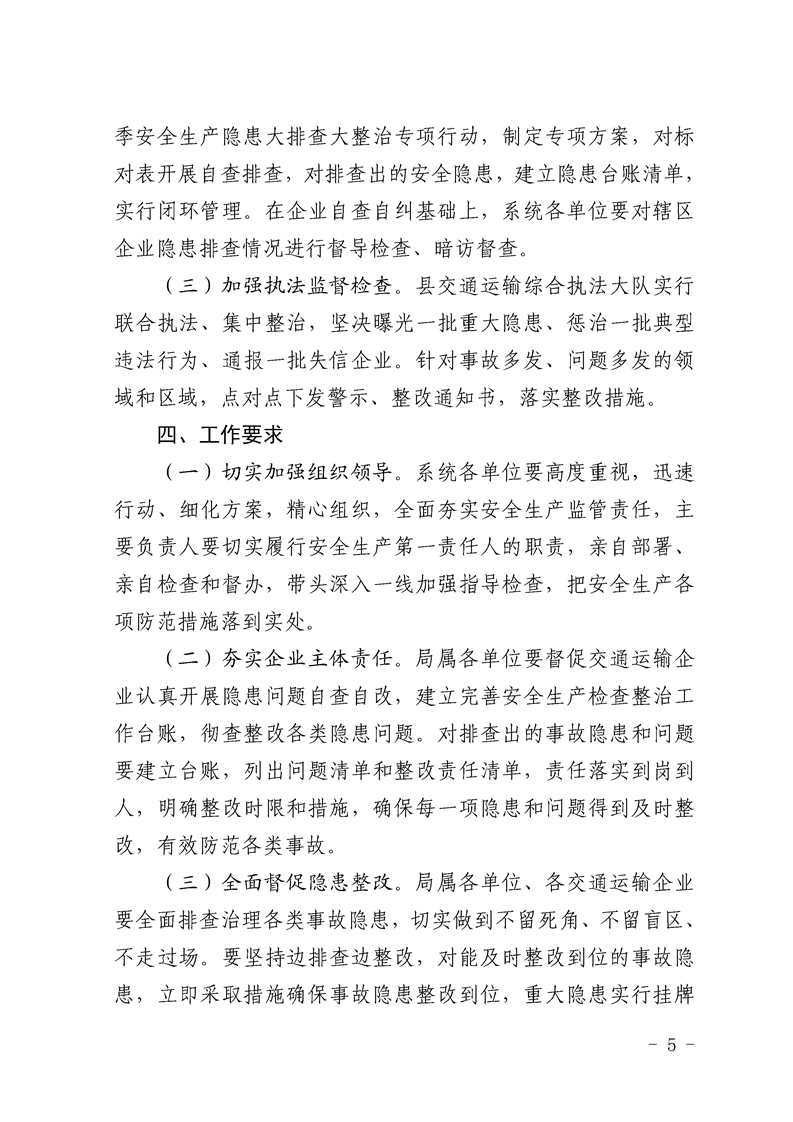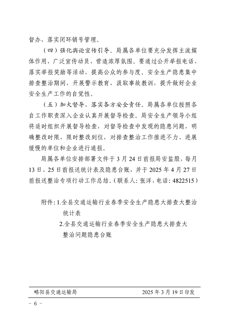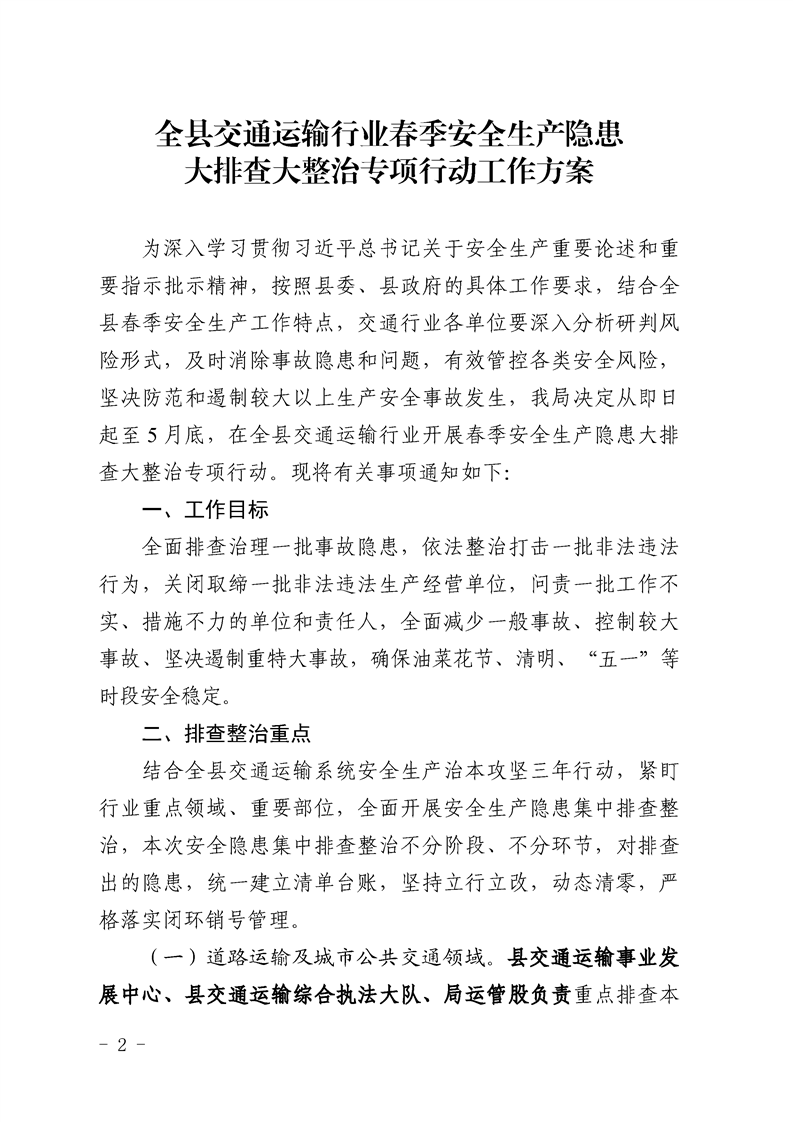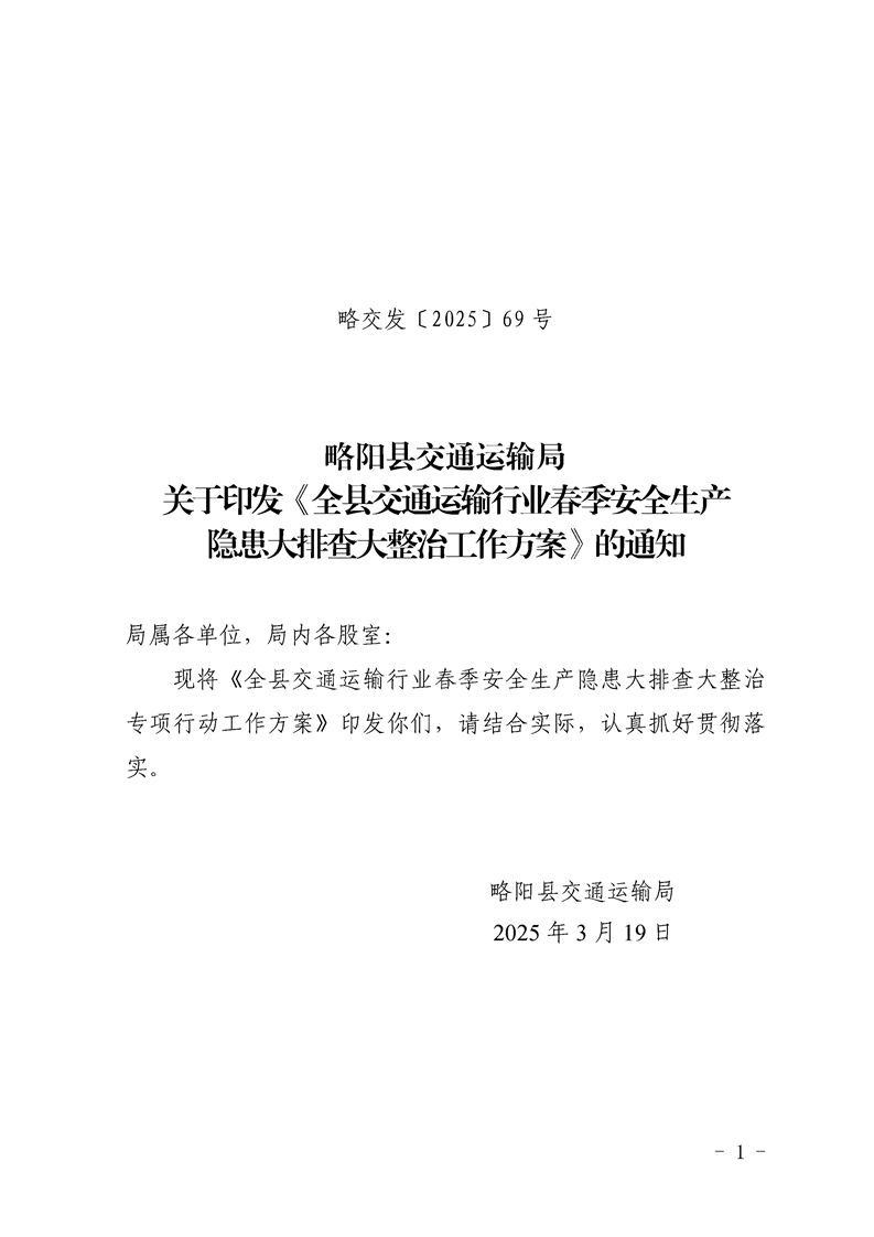 | 内容概述 | 略阳县交通运输局关于印发《全县交通运输行业春季安全生产隐患大排查大整治工作方案》的通知 | ||||