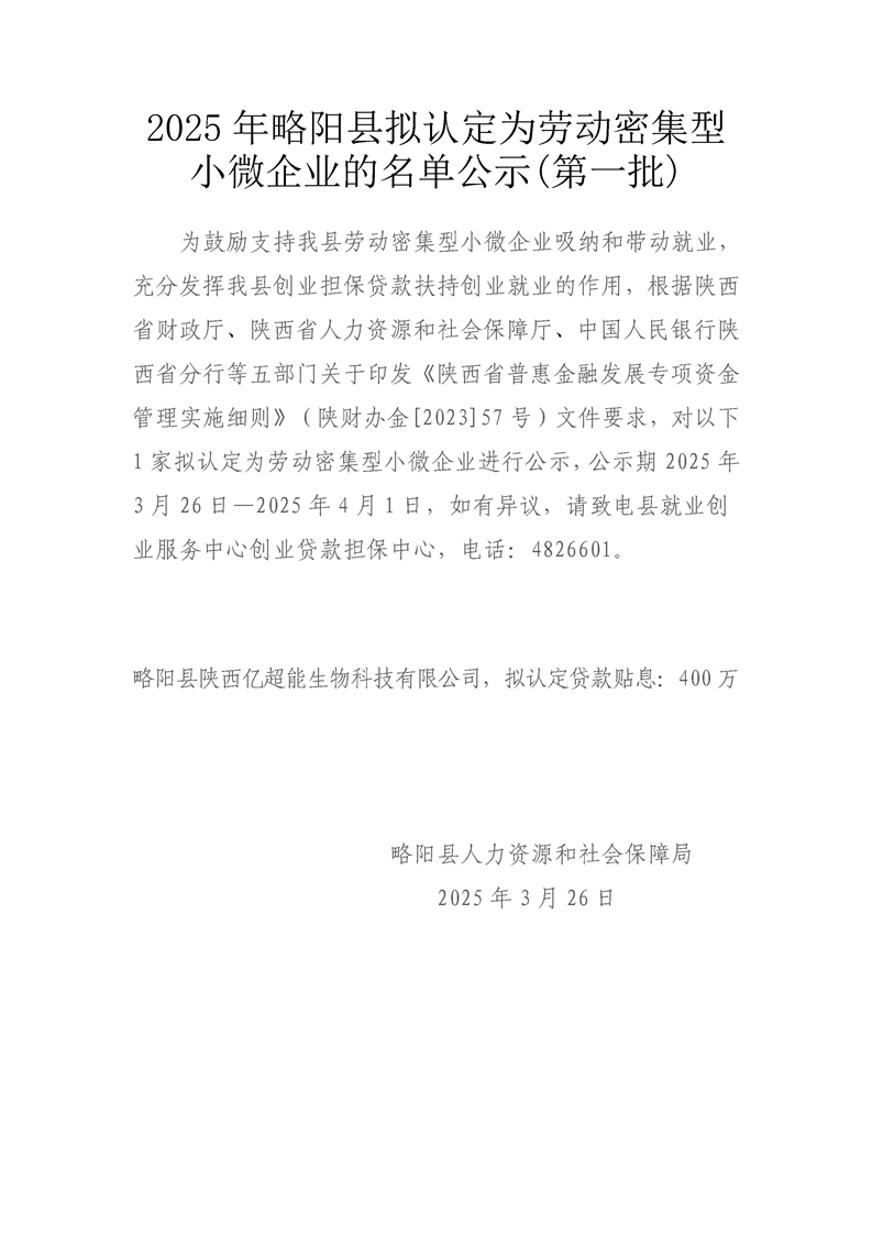 2025年略阳县拟认定为劳动密集型小微企业的名单公示(第一批)