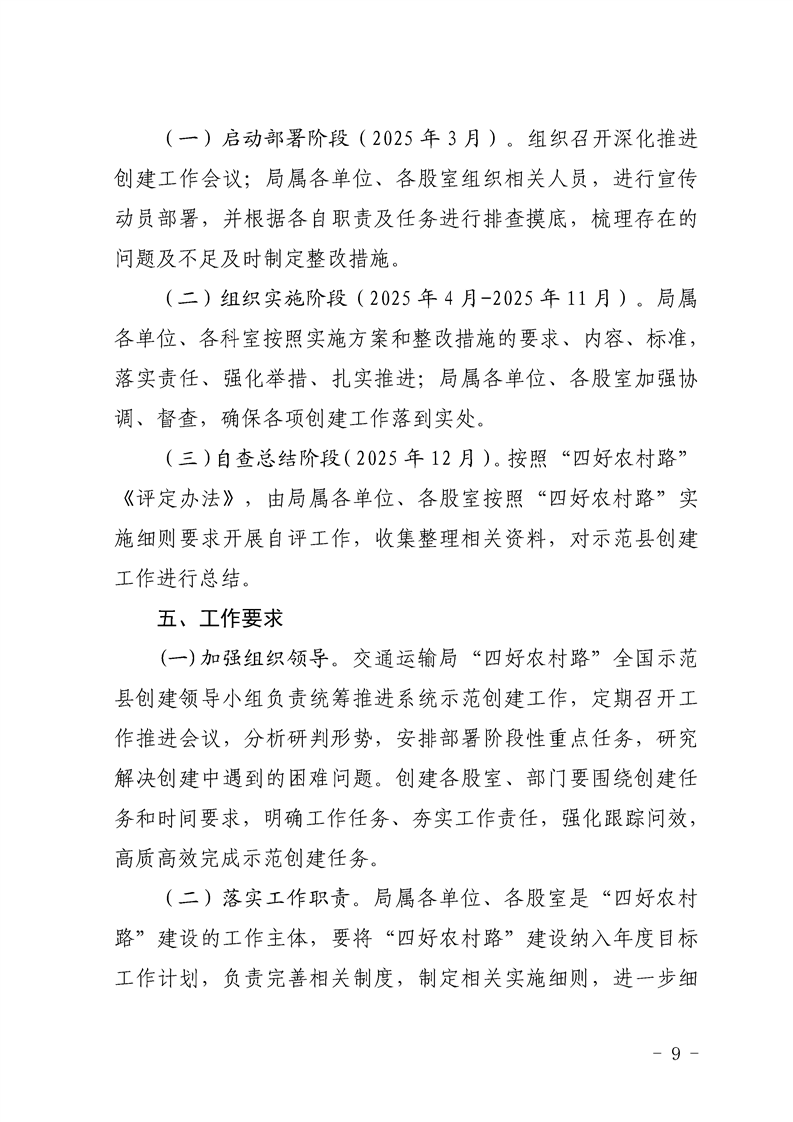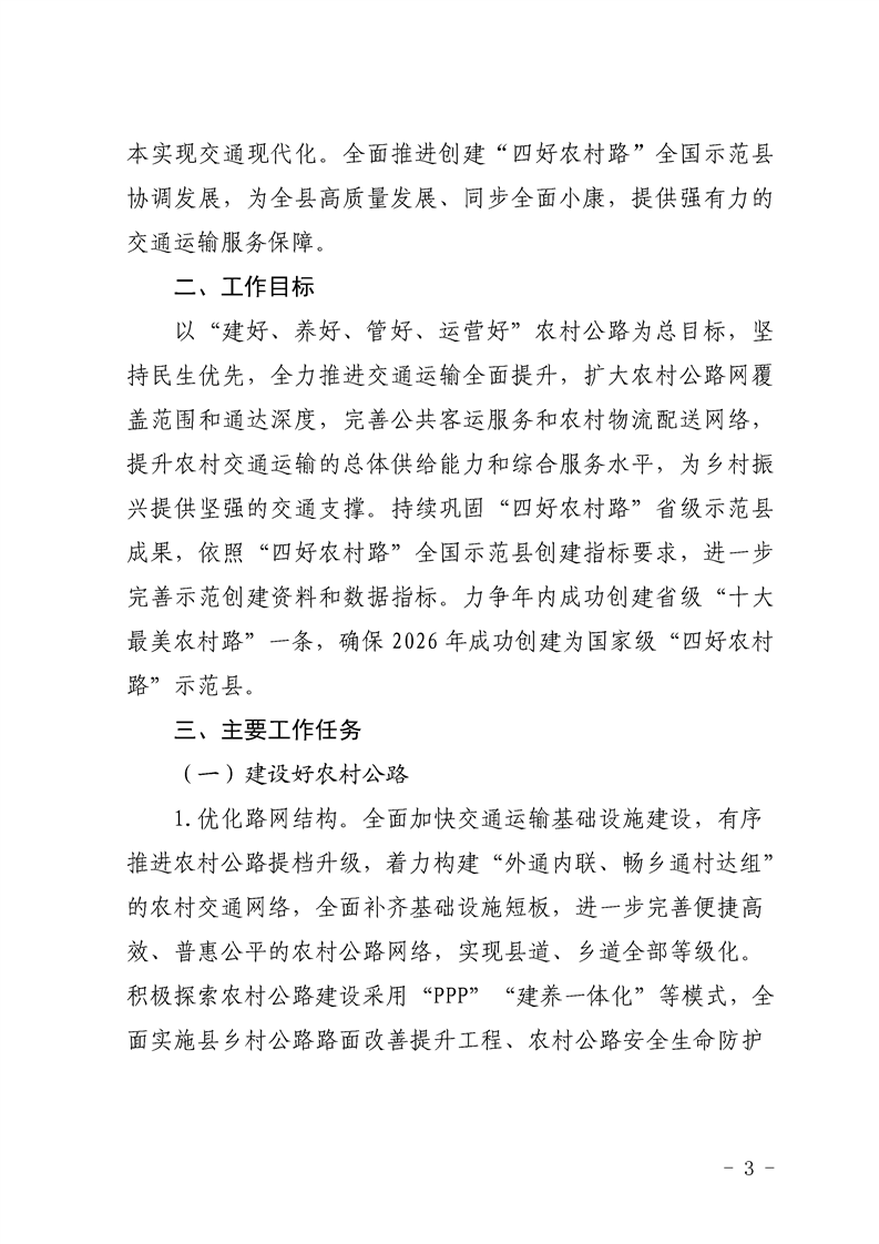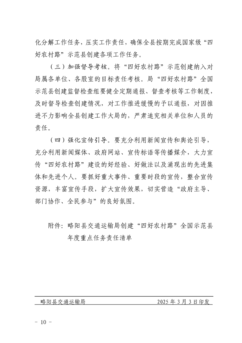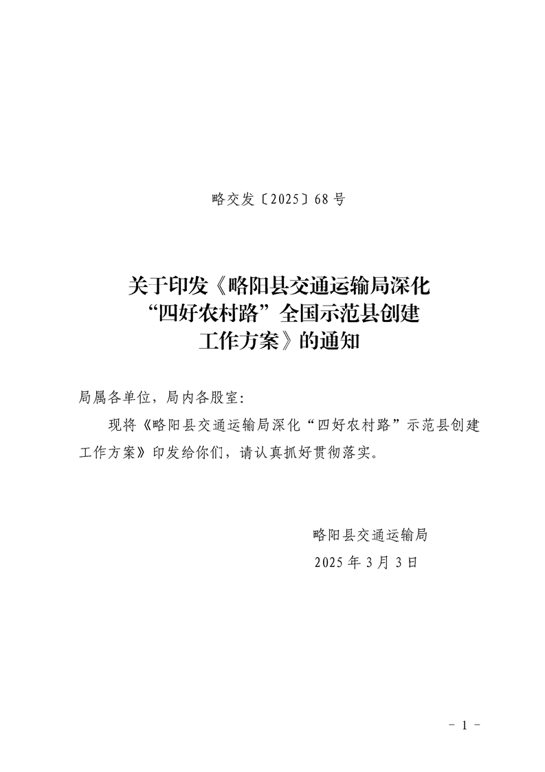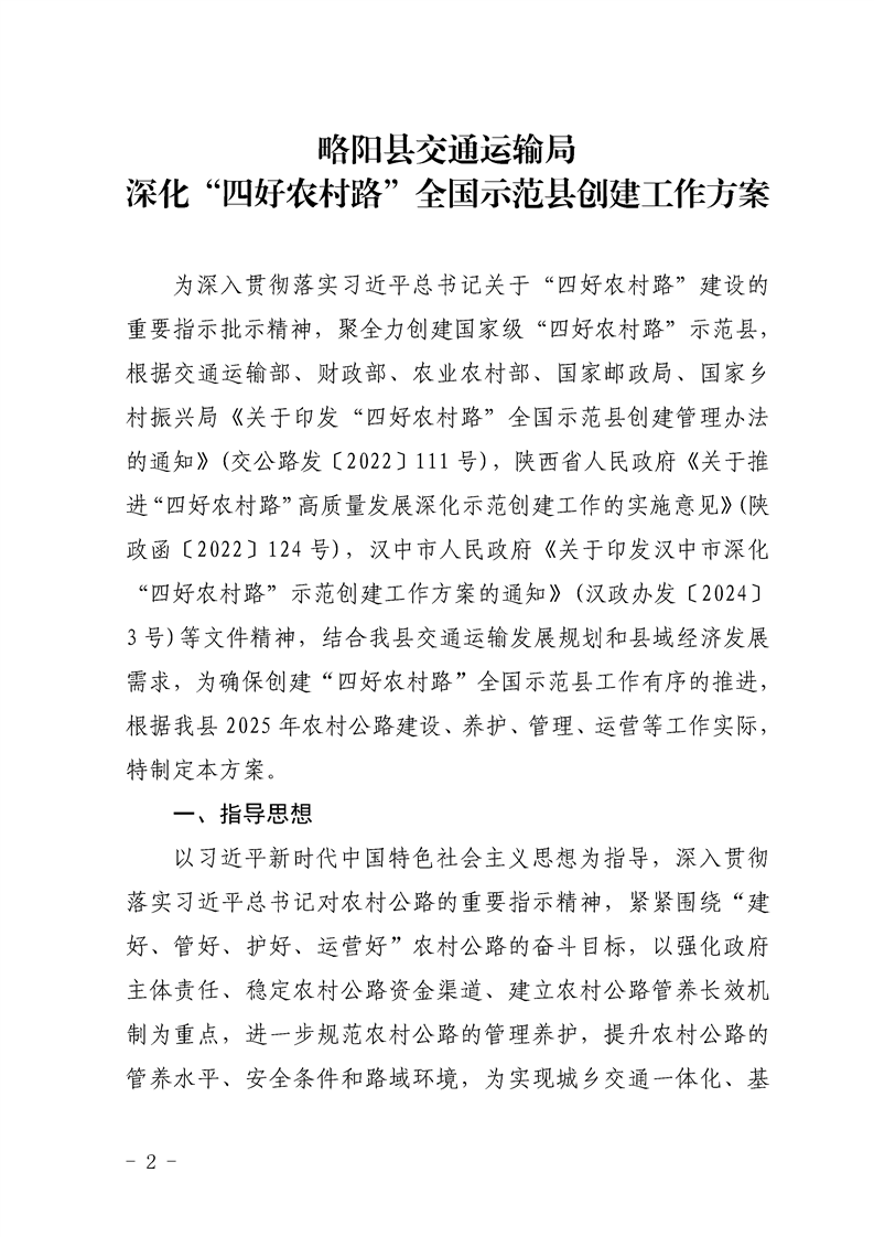 | 内容概述 | 关于印发《略阳县交通运输局深化“四好农村路”全国示范县创建工作方案》的通知 | ||||