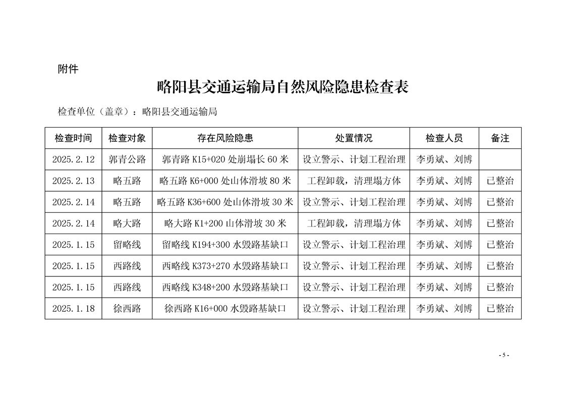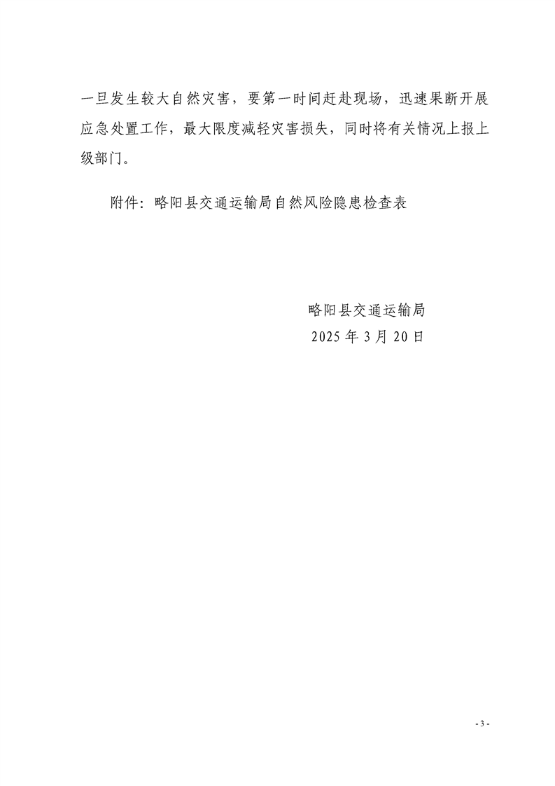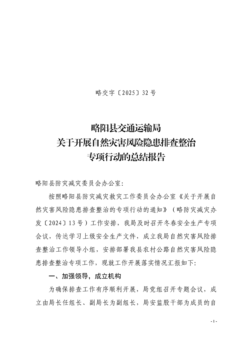 略阳县交通运输局关于开展自然灾害风险隐患排查整治专项行动的总结报告