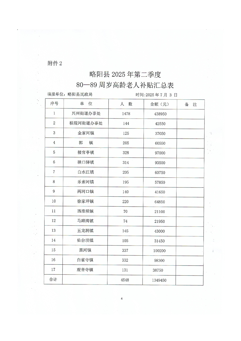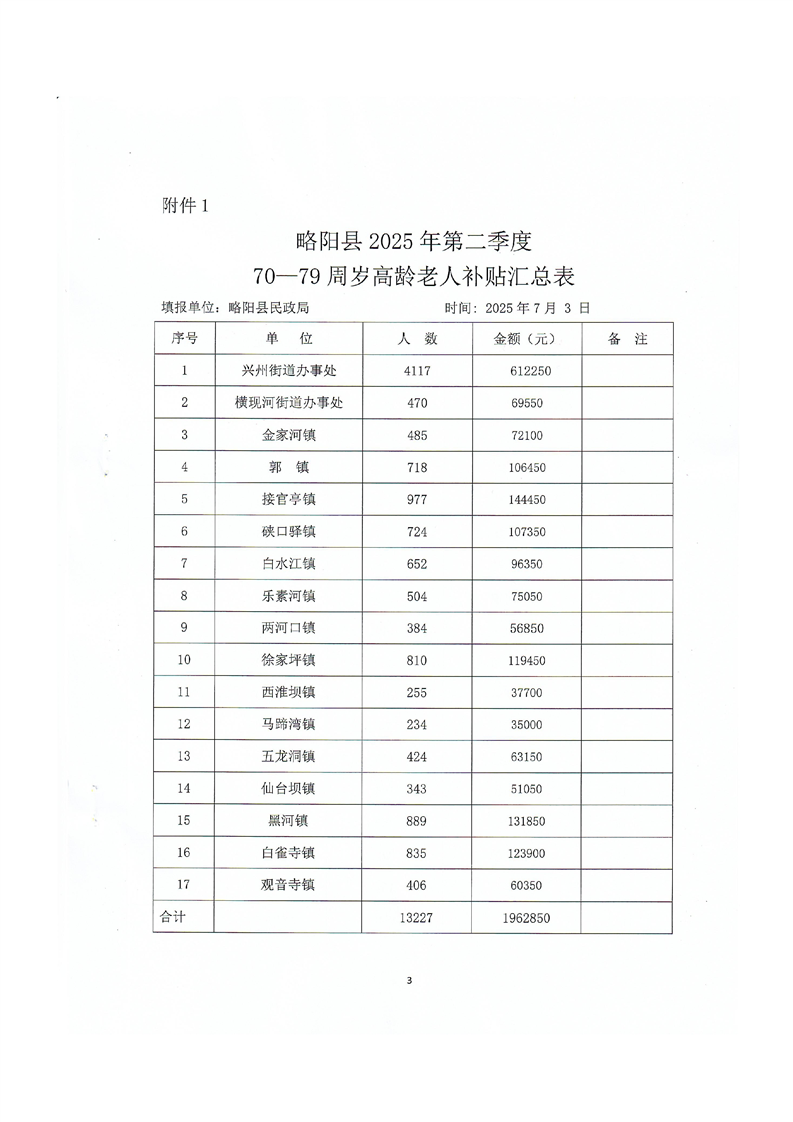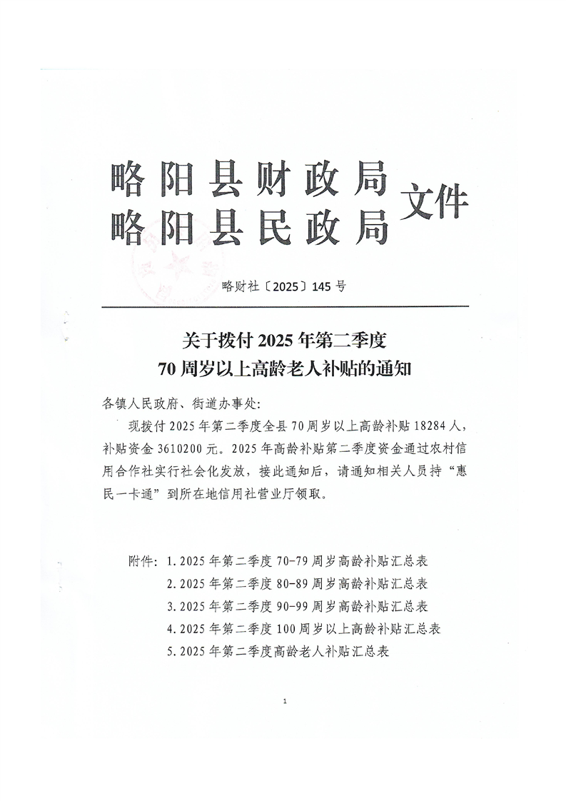 关于拨付 2025 年第二季度70周岁以上高龄老人补贴的通知