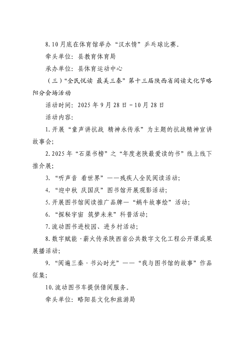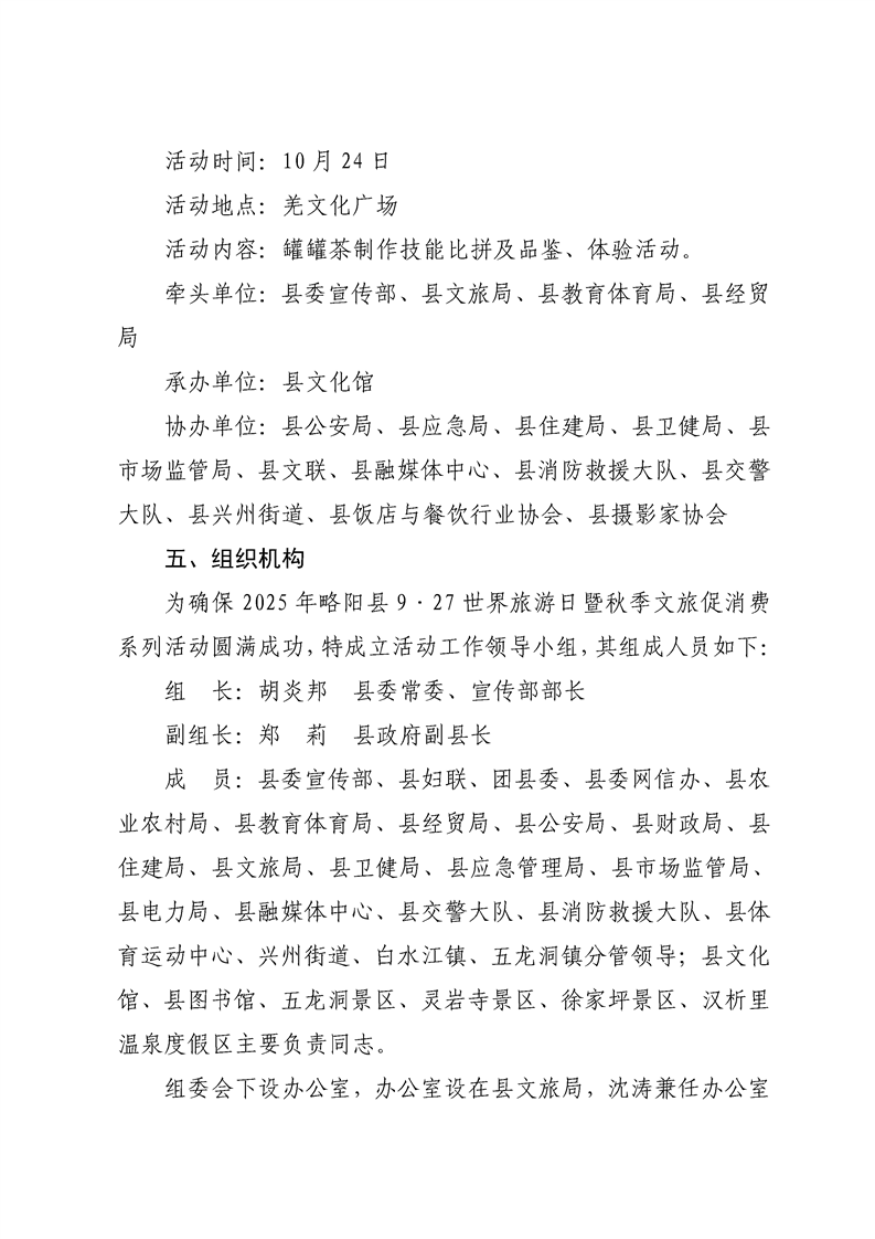 | 内容概述 | 略阳县文化和旅游局2025年略阳县9·27世界旅游日暨秋季文旅促消费系列活动方案 | ||||