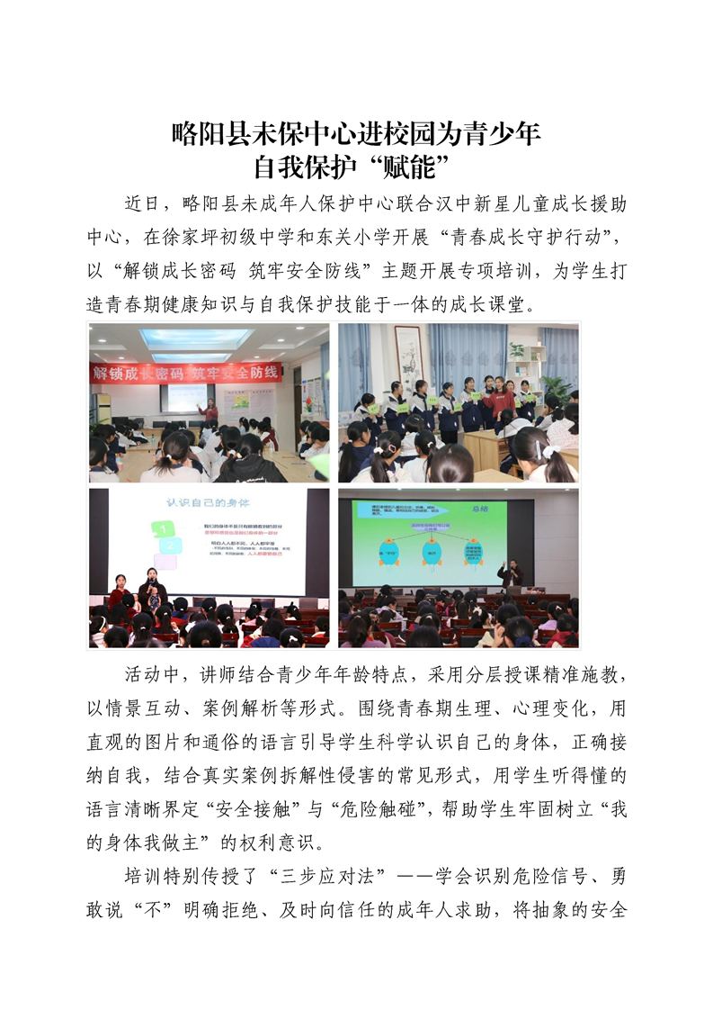 略阳县未保中心进校园为青少年自我保护“赋能”