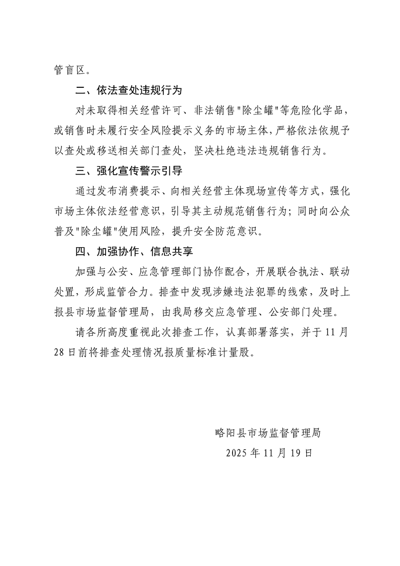 略阳县市场监督管理局关于开展“除尘罐”等产品紧急排查的通知