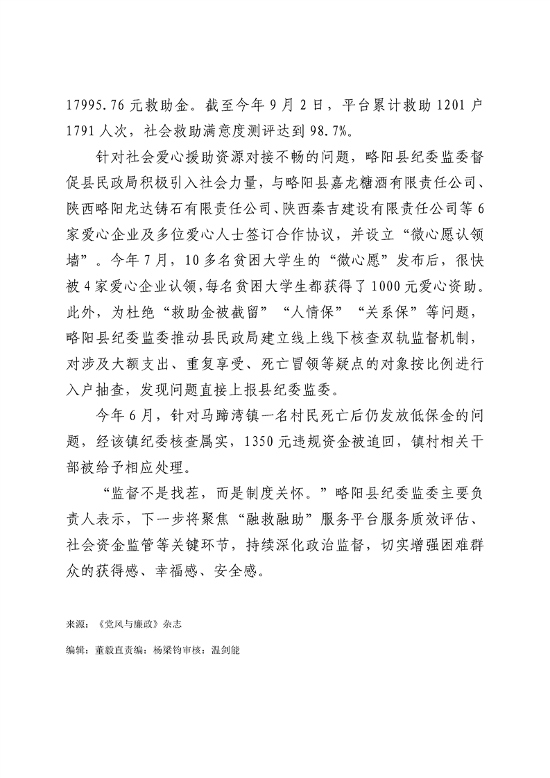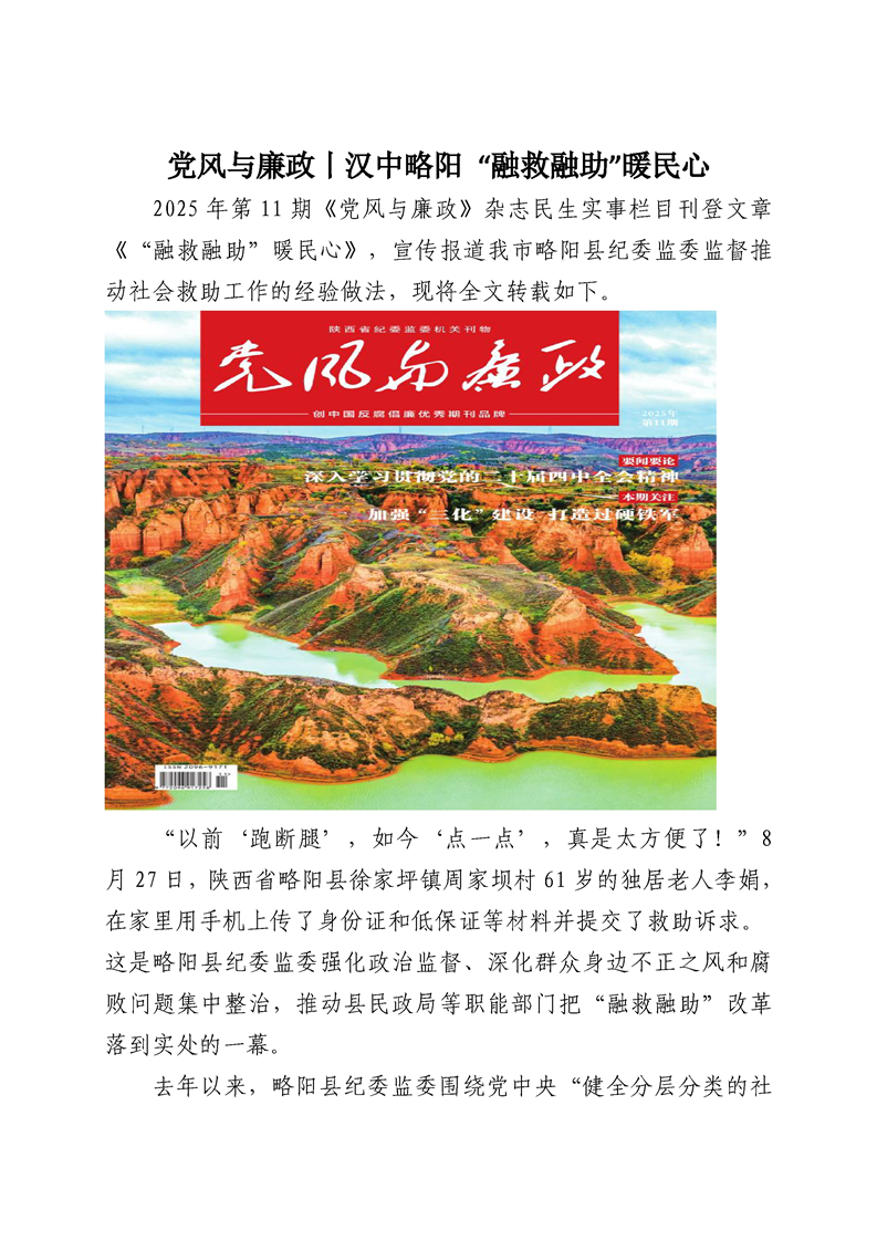 党风与廉政丨汉中略阳 “融救融助”暖民心