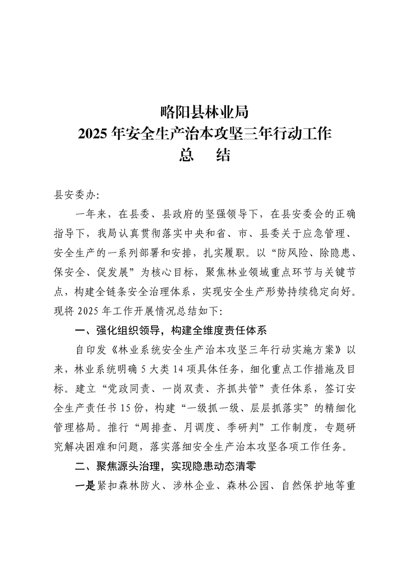 略阳县林业局2025年安全生产治本攻坚三年行动工作总结