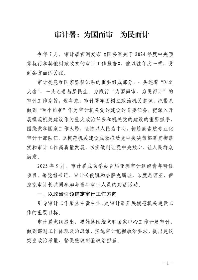 审计署:为国而审 为民而计