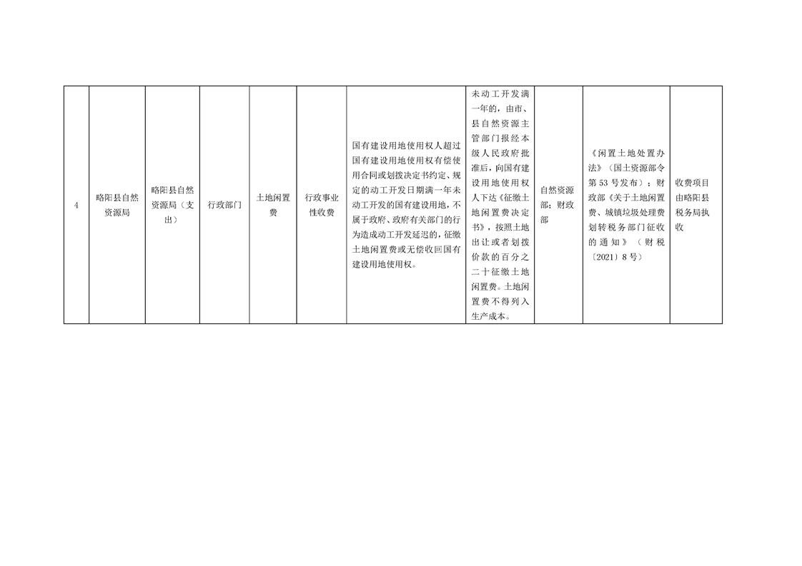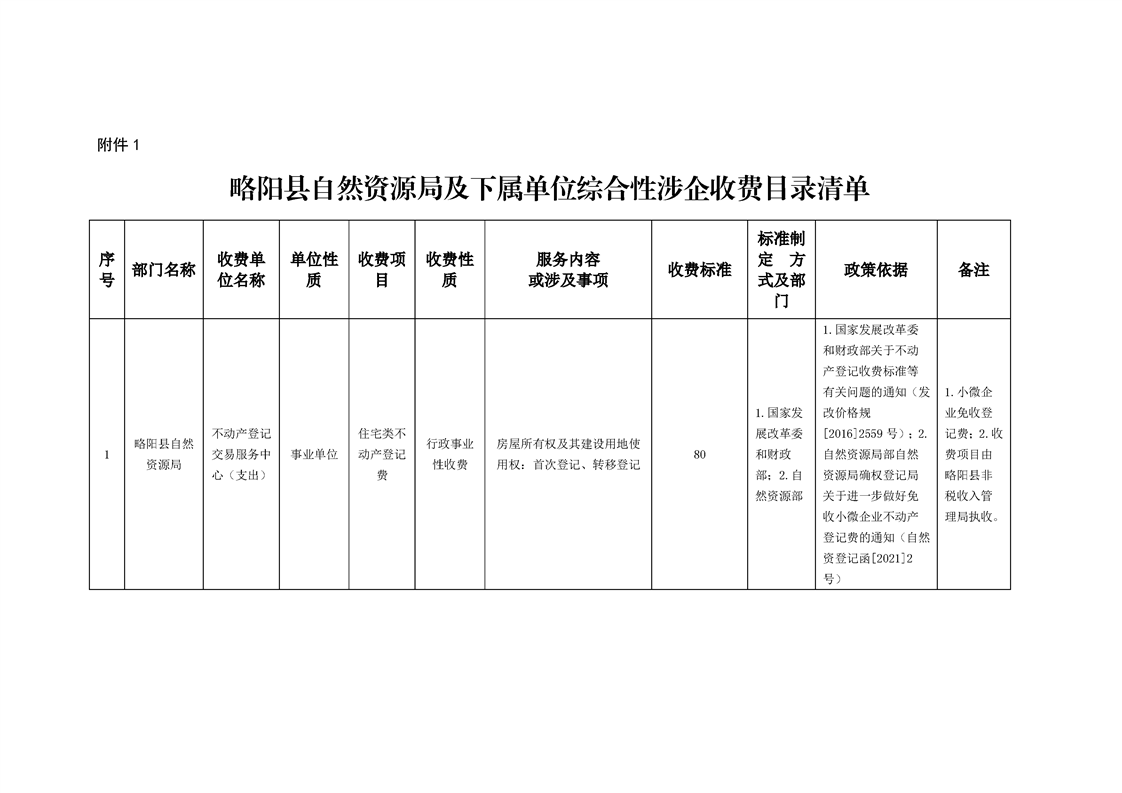 略阳县自然资源局及下属单位综合性涉企收费目录清单