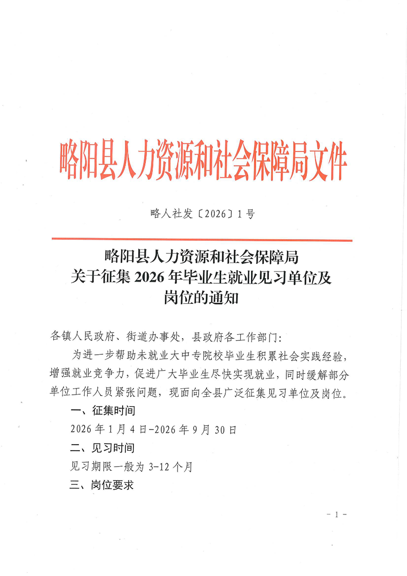 | 发布日期 | 2026-01-04 09:11:39 | 发文字号 | 略人社发〔2026〕1号 | ||