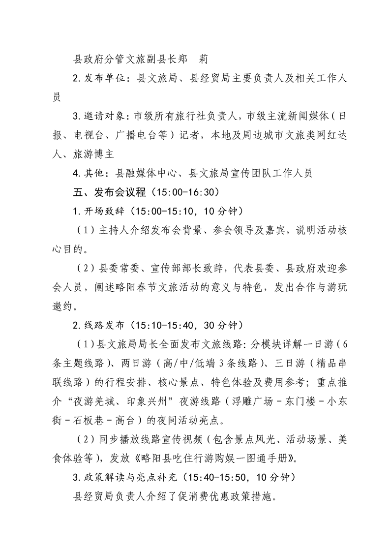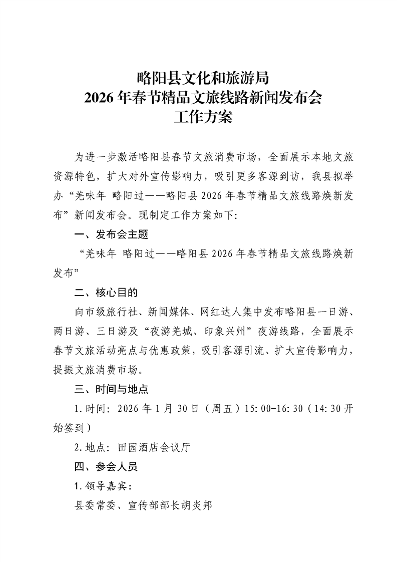略阳县文化和旅游局2026年春节精品文旅线路新闻发布会工作方案