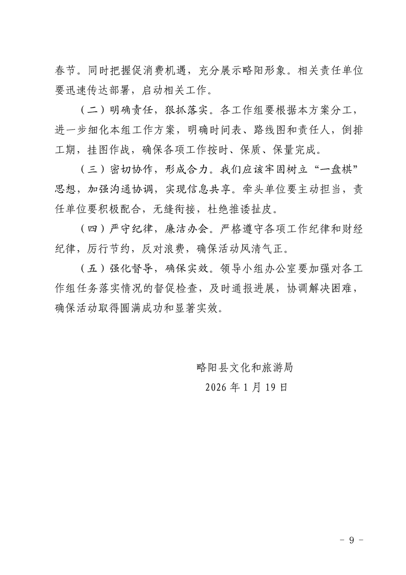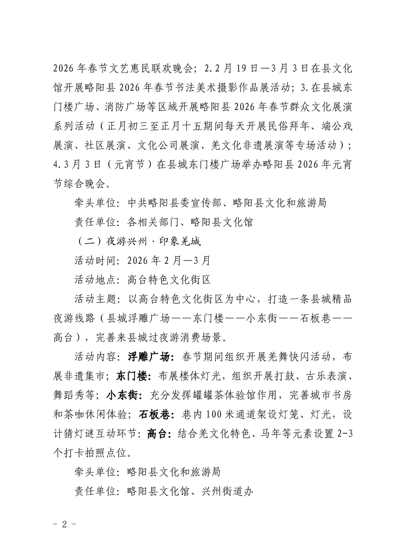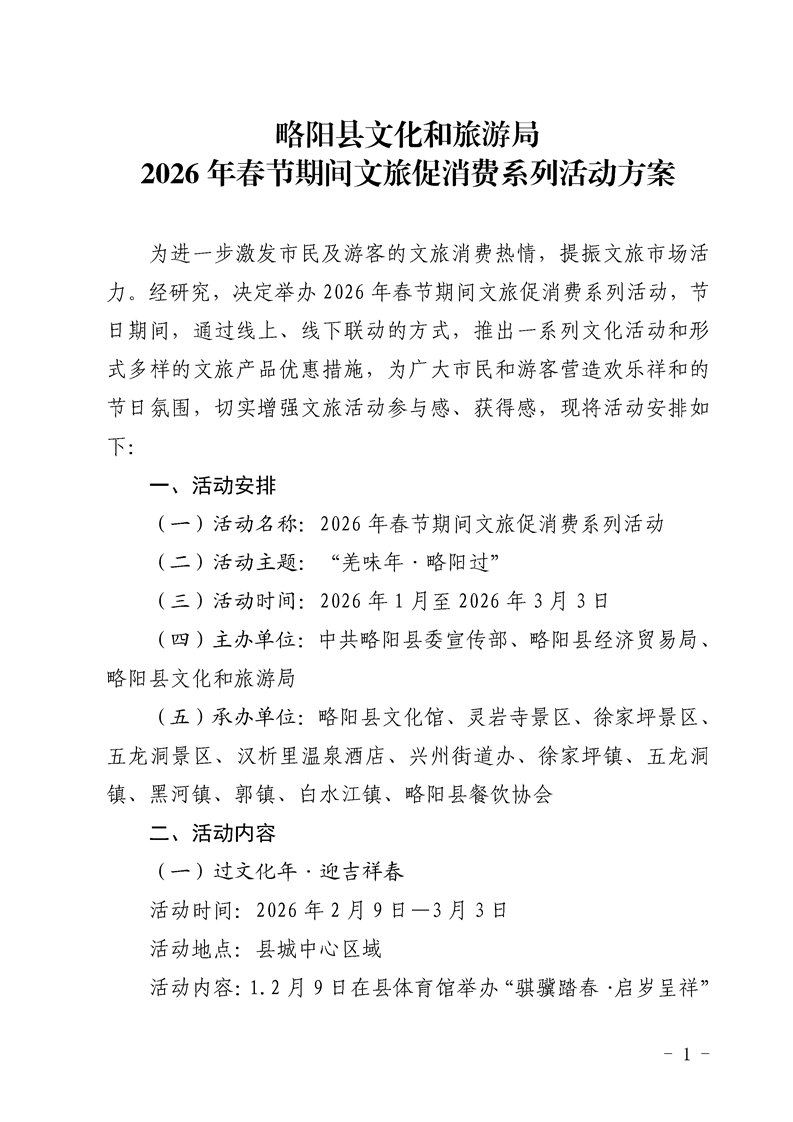 略阳县文化和旅游局2026年春节期间文旅促消费系列活动方案