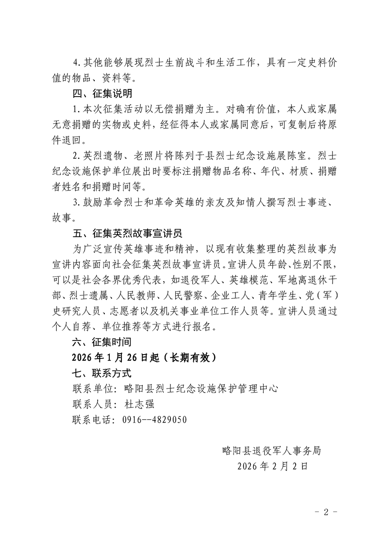 略阳县退役军人事务局关于面向社会征集英烈事迹收集英烈遗物讲述英烈故事有关事项的公告