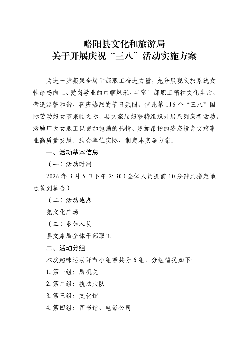 略阳县文化和旅游局关于开展庆祝“三八”活动实施方案