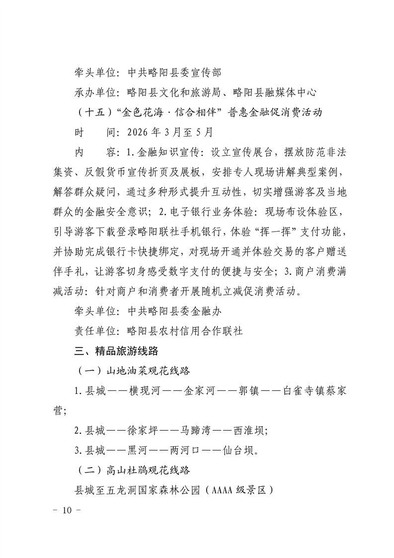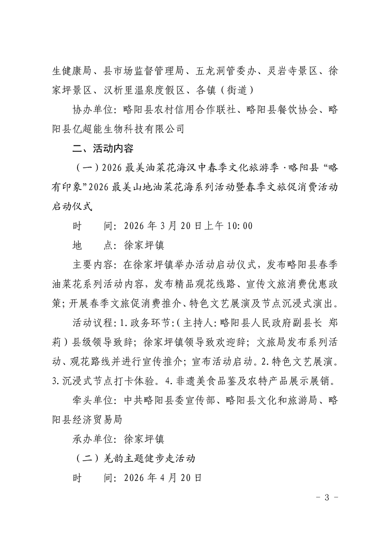 | 内容概述 | 略阳县文化和旅游局2026最美油菜花海汉中春季文化旅游季·略阳县“略有印象”2026最美山地油菜花海系列活动暨春季文旅促消费活动工作方案 | ||||