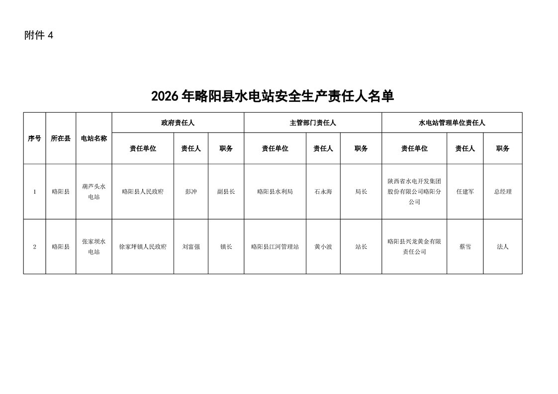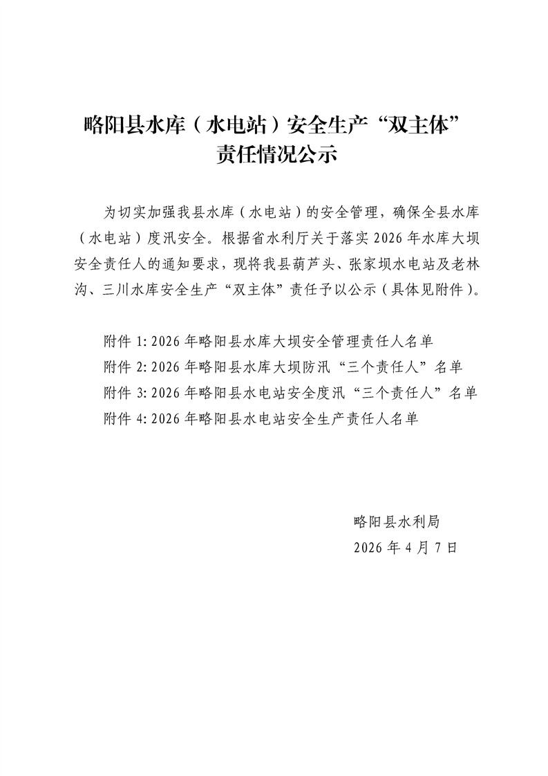2026年略阳水库水电站安全生产双主体责任情况公示