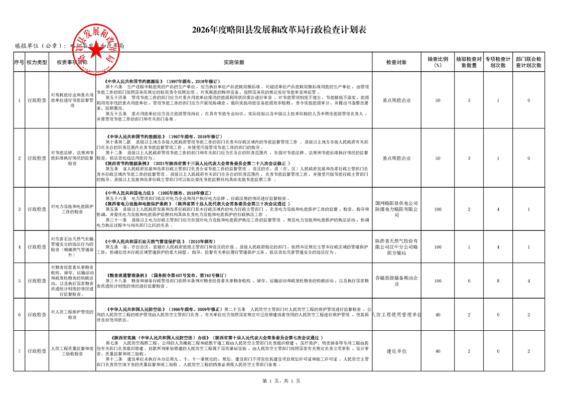 2026年度略阳县发展和改革局行政检查计划表