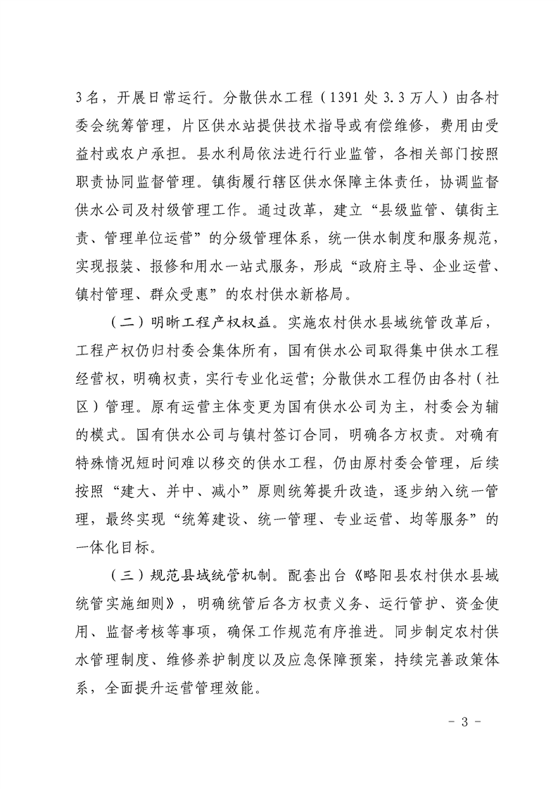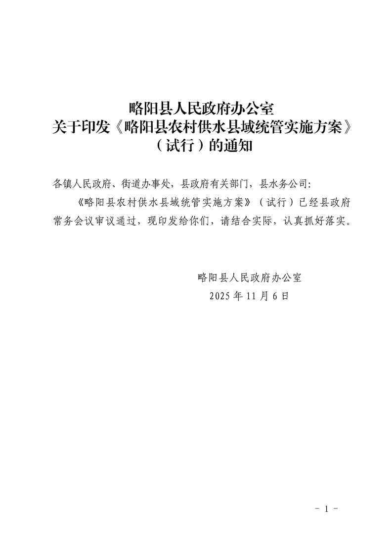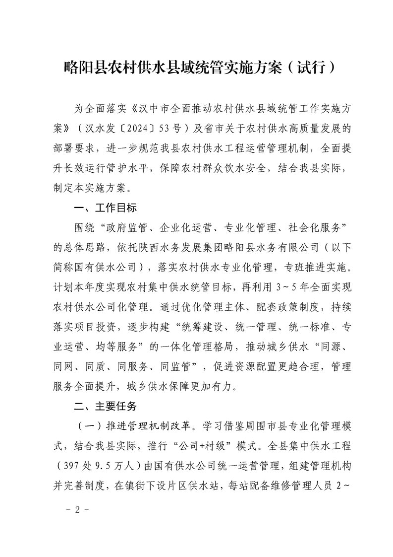 | 内容概述 | 略阳县人民政府办公室关于印发《略阳县农村供水县域统管实施方案》(试行)的通知 | ||||