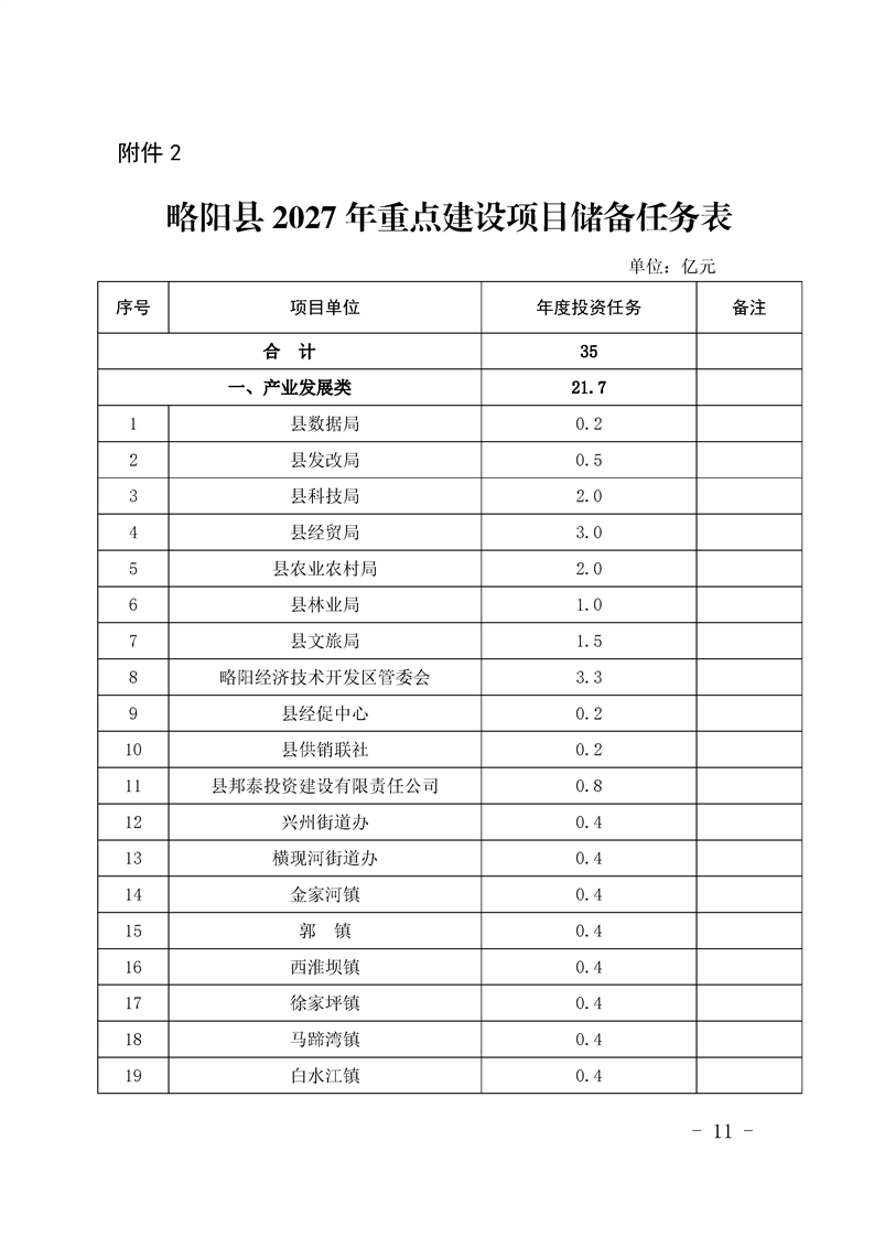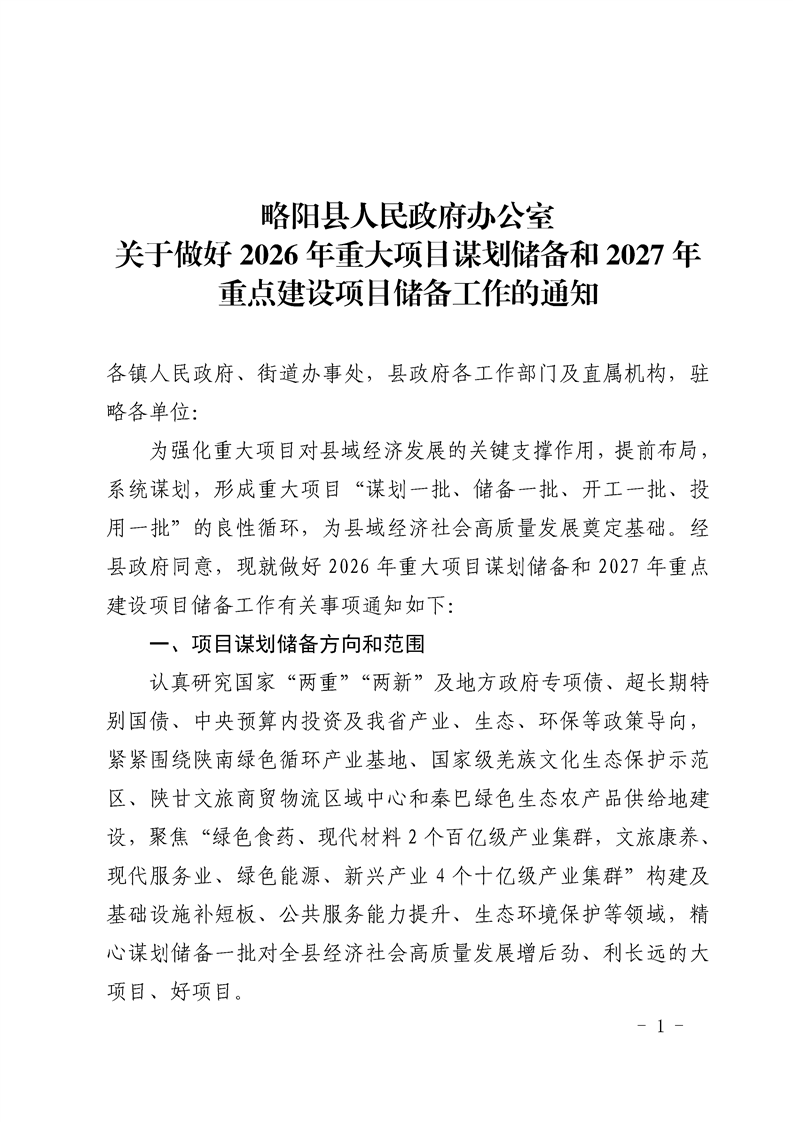 | 内容概述 | 略阳县人民政府办公室关于做好2026年重大项目谋划储备和2027年重点建设项目储备工作的通知 | ||||