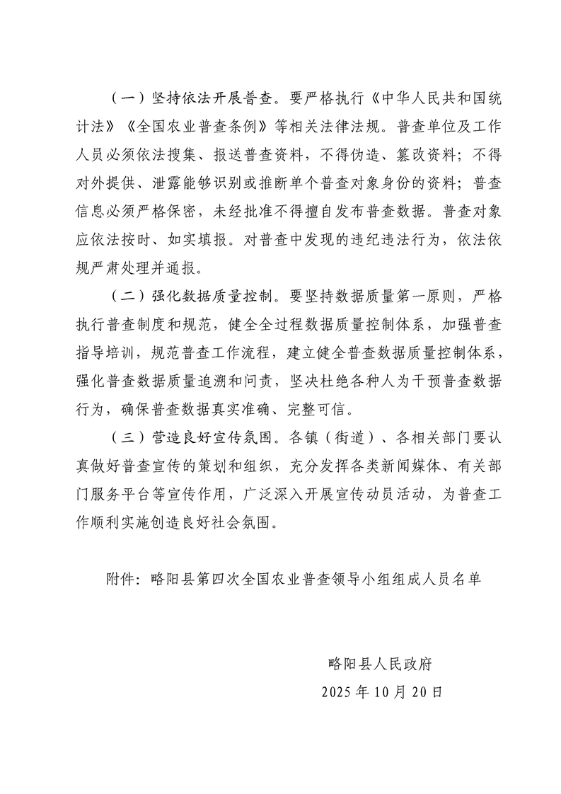 略阳县人民政府关于认真做好第四次全国农业普查工作的通知