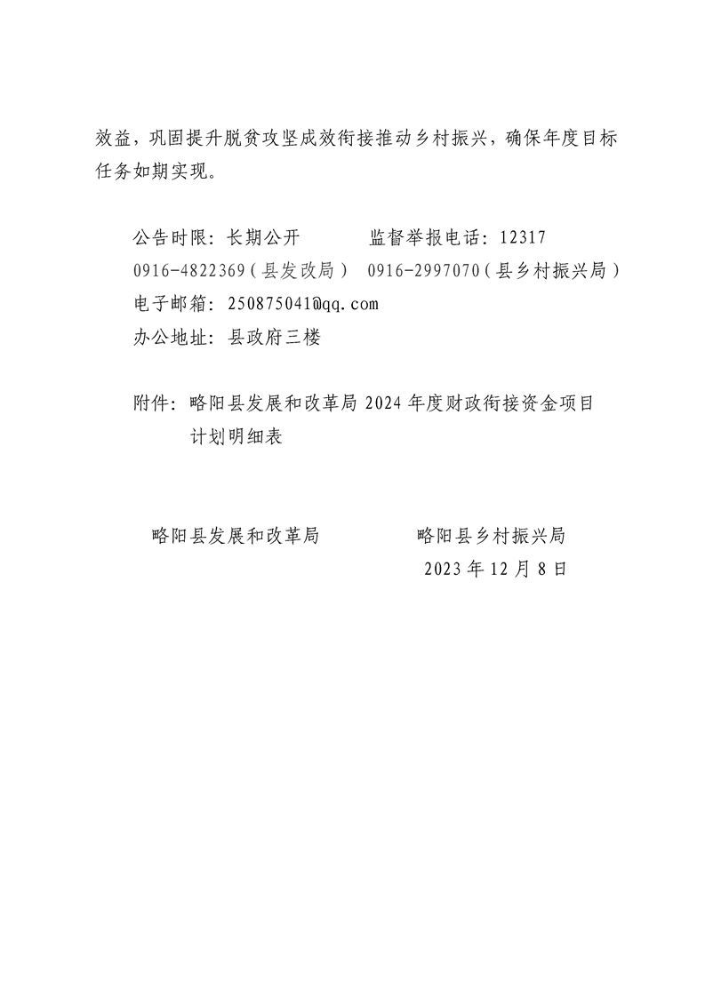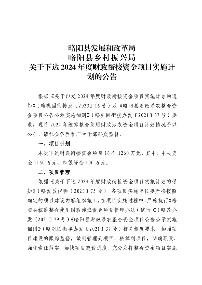 关于下达2024年度财政衔接资金项目实施计划的公告